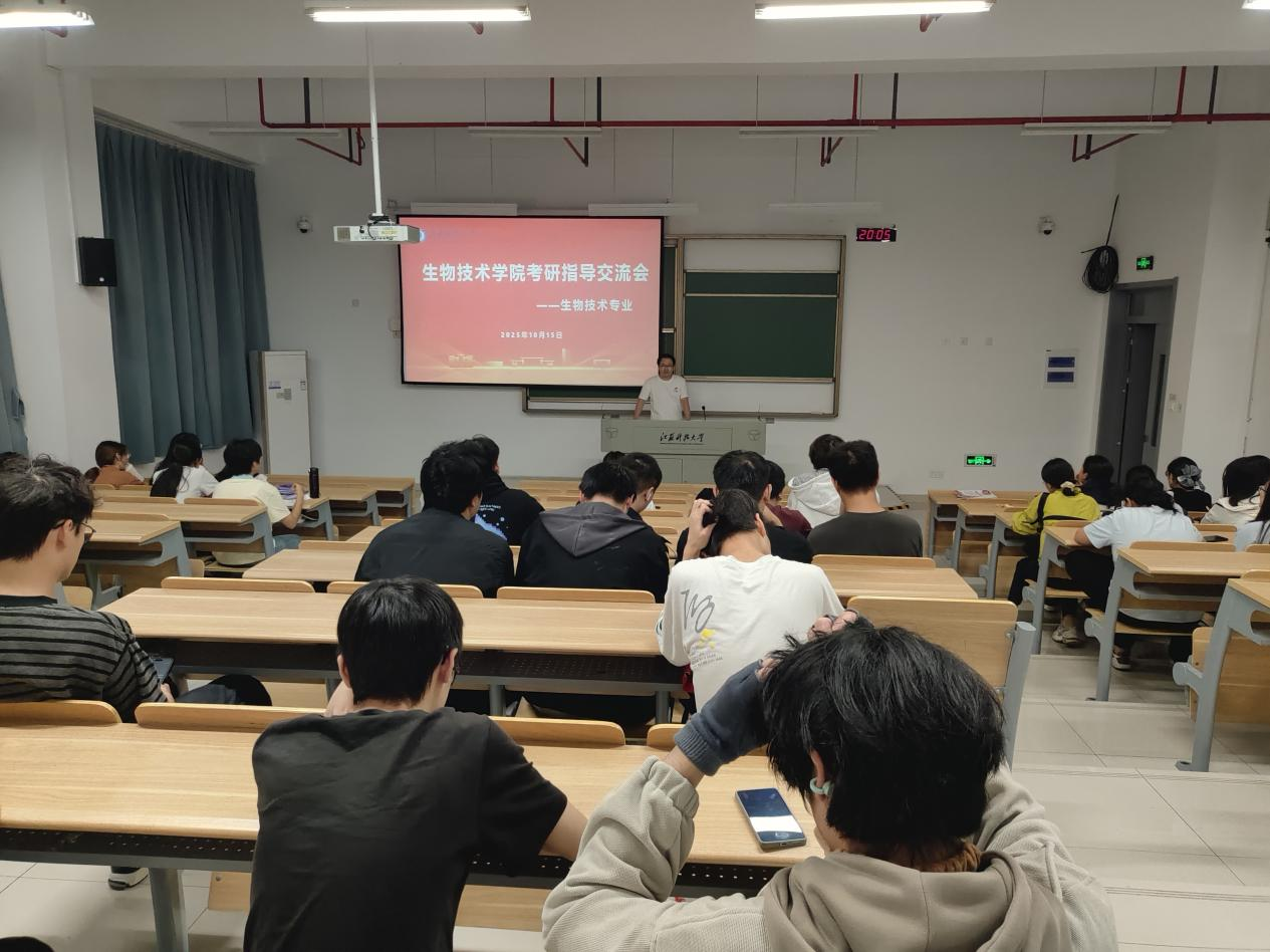 为前置部署2027届本科生考研工作,精准护航学生升学路径,2025年10月15日至16日,生物技术学院联合文天教育在笃学楼分专业举办三场考研指导交流会。文天教育资深讲师李老师应邀担任主讲,学院2027届全体本科生参会。