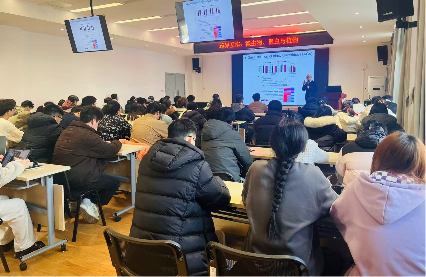 本次报告聚焦于自然界中微生物、昆虫与植物三者之间复杂而精妙的相互作用关系。Lee教授结合其团队近年来的研究成果,系统阐释了跨界生物互作在生态系统功能维持、农业可持续发展及生物防治等方面的关键作用。报告通过丰富的实验数据与案例,揭示了微生物如何影响昆虫行为、植物健康以及三者之间形成的协同进化网络,为相关领域研究提供了新视角与方法论启示。