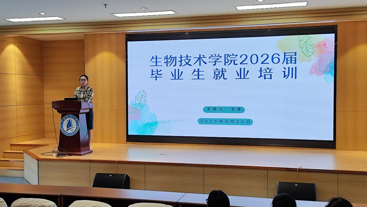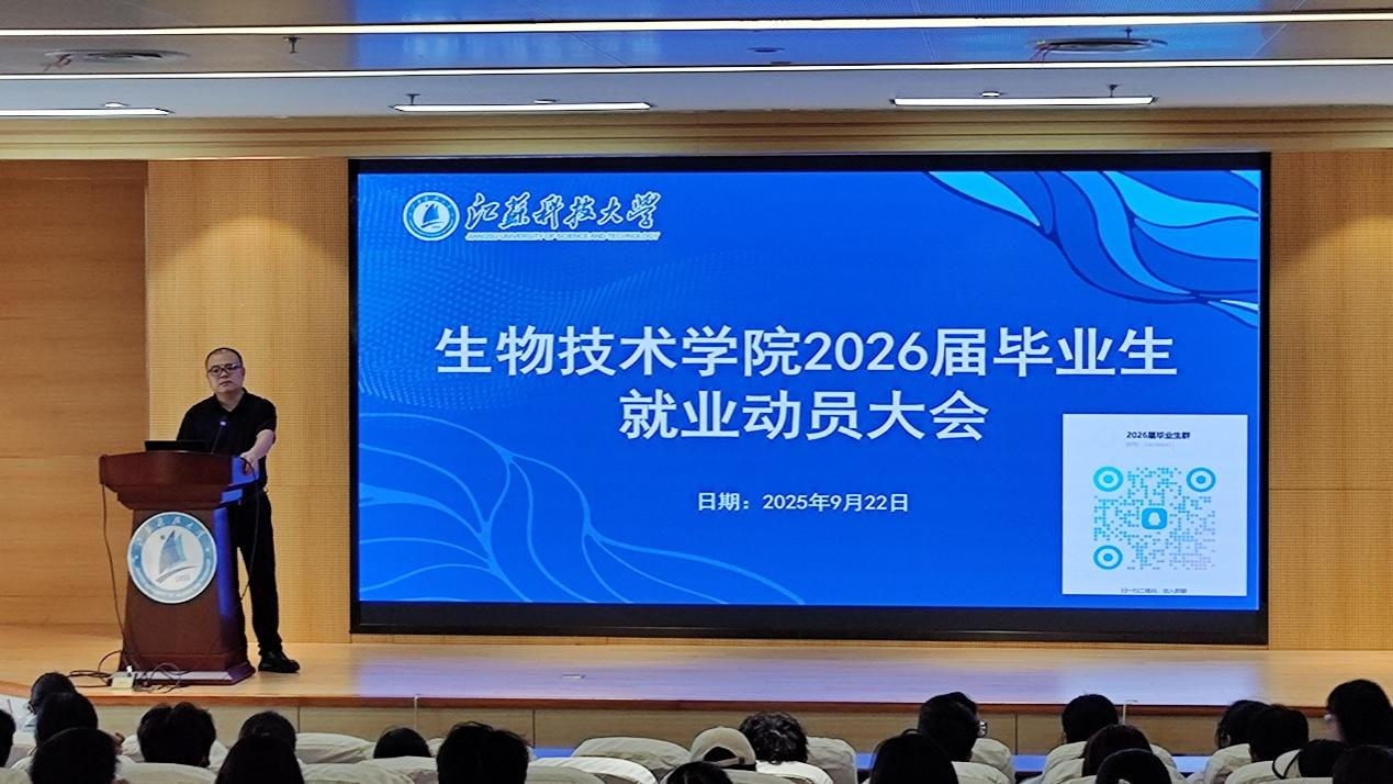 为深入贯彻落实党中央、国务院关于构建高质量就业服务体系、促进高校毕业生高质量充分就业的决策部署,充分发挥一站式学生社区贴近学生、整合资源的综合优势,生物技术学院于9月22日在图书馆B102报告厅举办2026届毕业生就业动员大会。学院党委副书记唐亮、船舶与海洋工程学院辅导员王荃、毕业班辅导员及2026届毕业生参加会议,共同启动“社区+就业”双融双促专项行动,为学生科学规划职业生涯、实现高质量充分就业注入推动力。