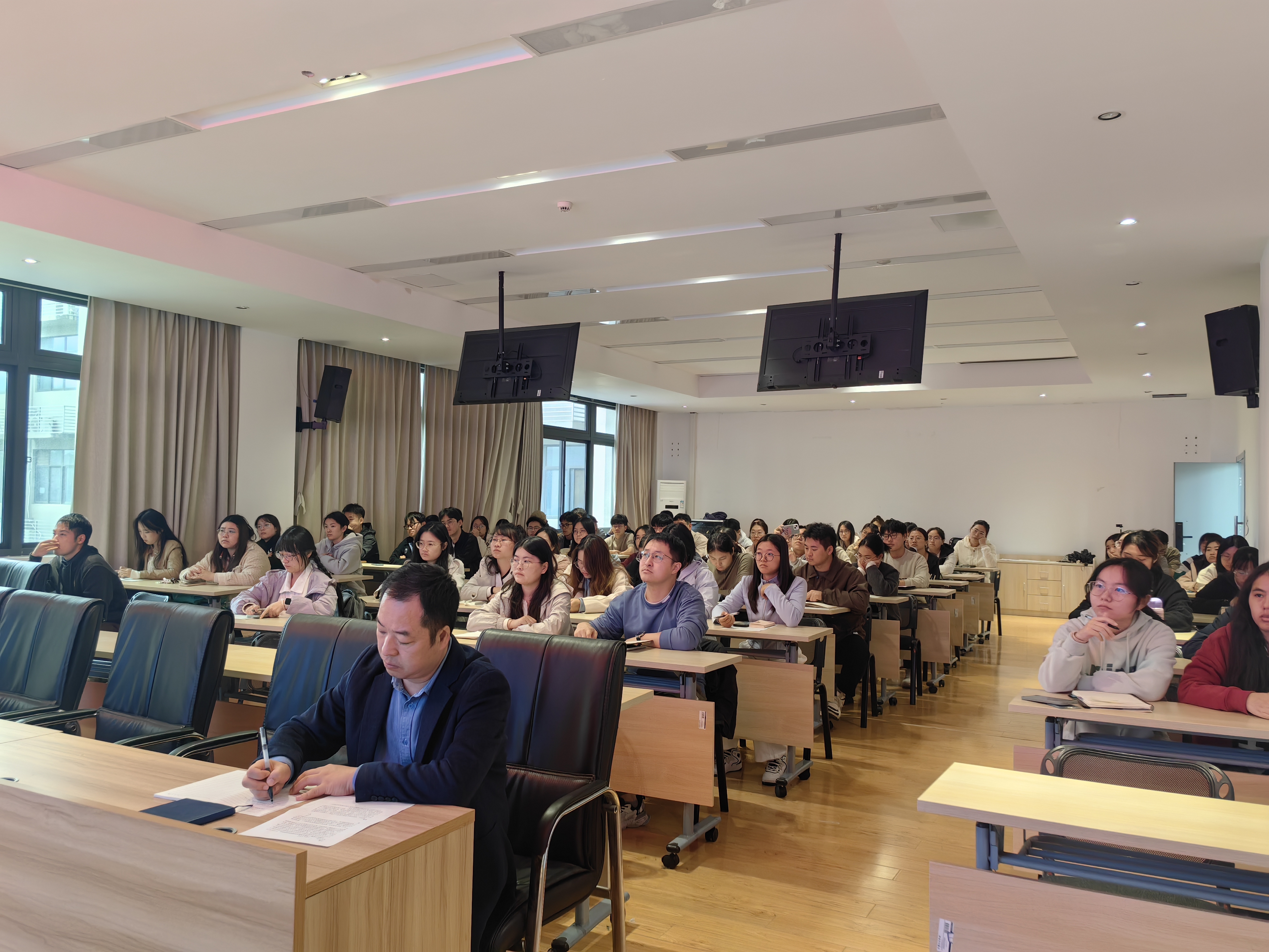 讲堂上,李木旺阐述了党的二十届四中全会的重大意义,深入剖析了“十五五”时期国家发展的指导方针、主要目标和战略任务,并围绕“新质生产力与青年担当”“教育科技人才一体化”等话题与学生进行交流。