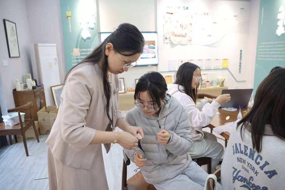 11月13日,长山校区桑蚕艺术工作坊内开展了一场别开生面的非遗文化体验活动。丝织韵社团以“锦上添花,发间添彩”为主题,成功举办非遗文创发夹手工制作比赛,吸引众多学子参与,在经纬交织中感受宋锦魅力,于巧手创作中激活传统技艺。
