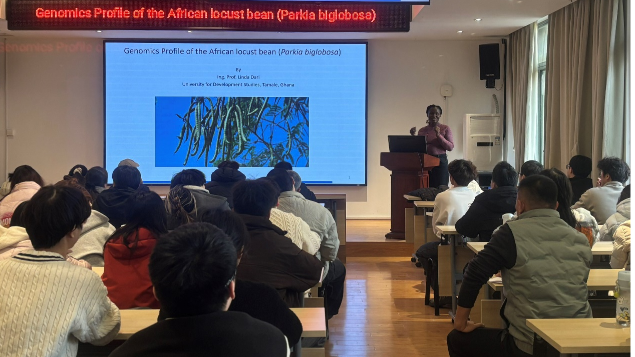 2026年1月15日下午,应蚕业研究所、生物技术学院邀请,加纳发展研究大学工程学院农业工程系副教授Linda Dari为所院师生作了一场题为《Genomics Profile of the African locustbean (Parkia biglobosa)》的精彩学术报告。