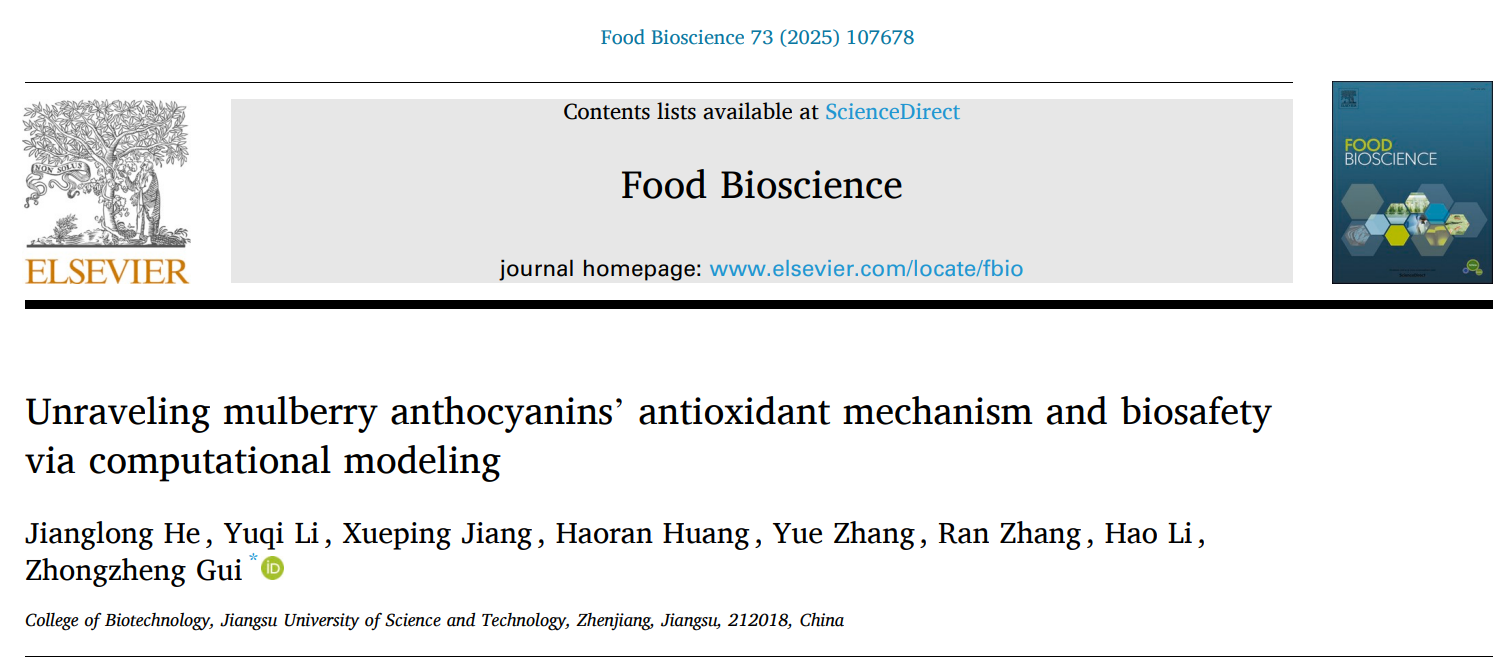 近日,江苏科技大学蚕研所/生物技术学院桂仲争研究员团队,在Elsevier出版社旗下的《Food Bioscience》(...